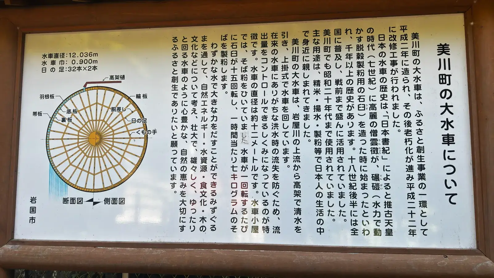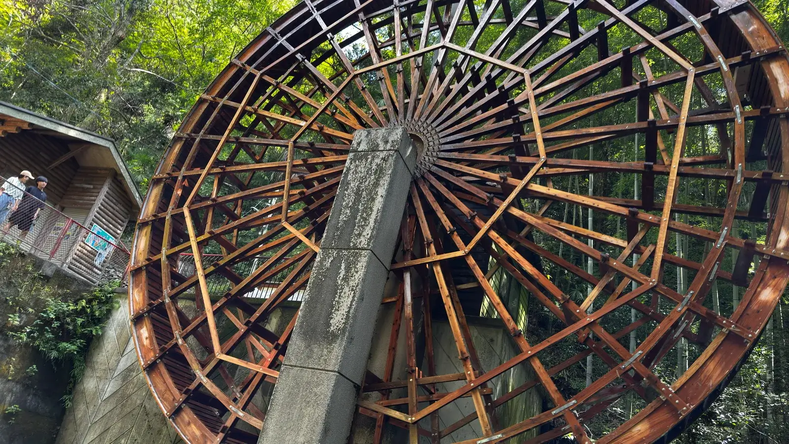 お寺の横にある大水車は、今まで自分が見た水車の中で一番大きいもので見応えがあります。