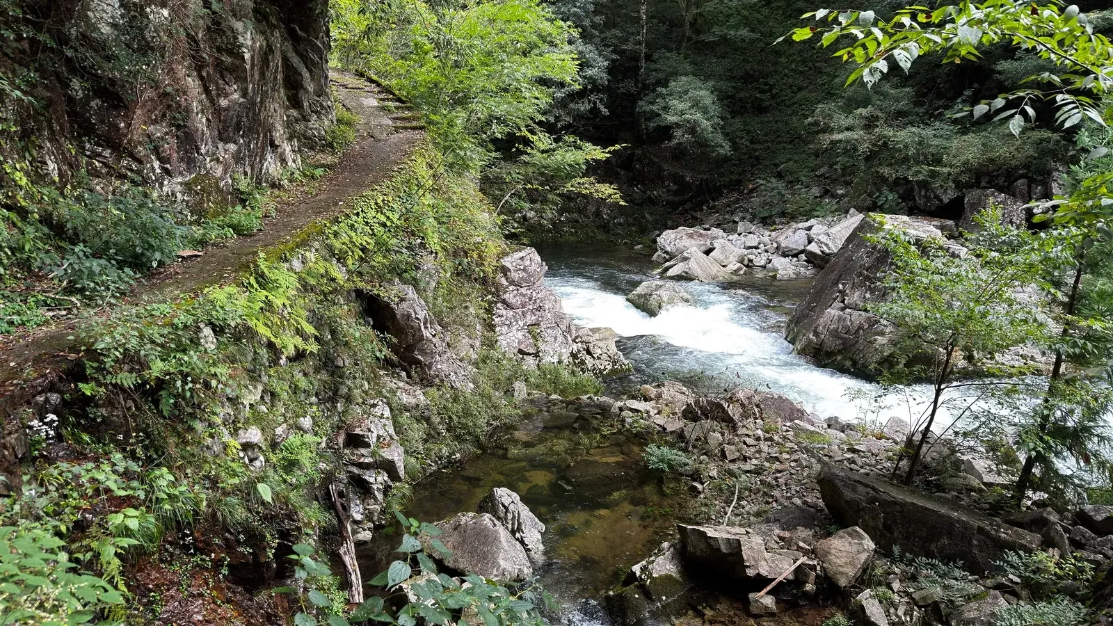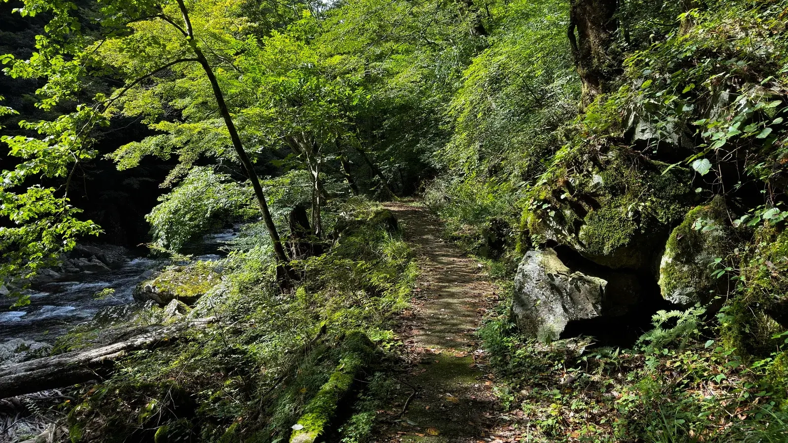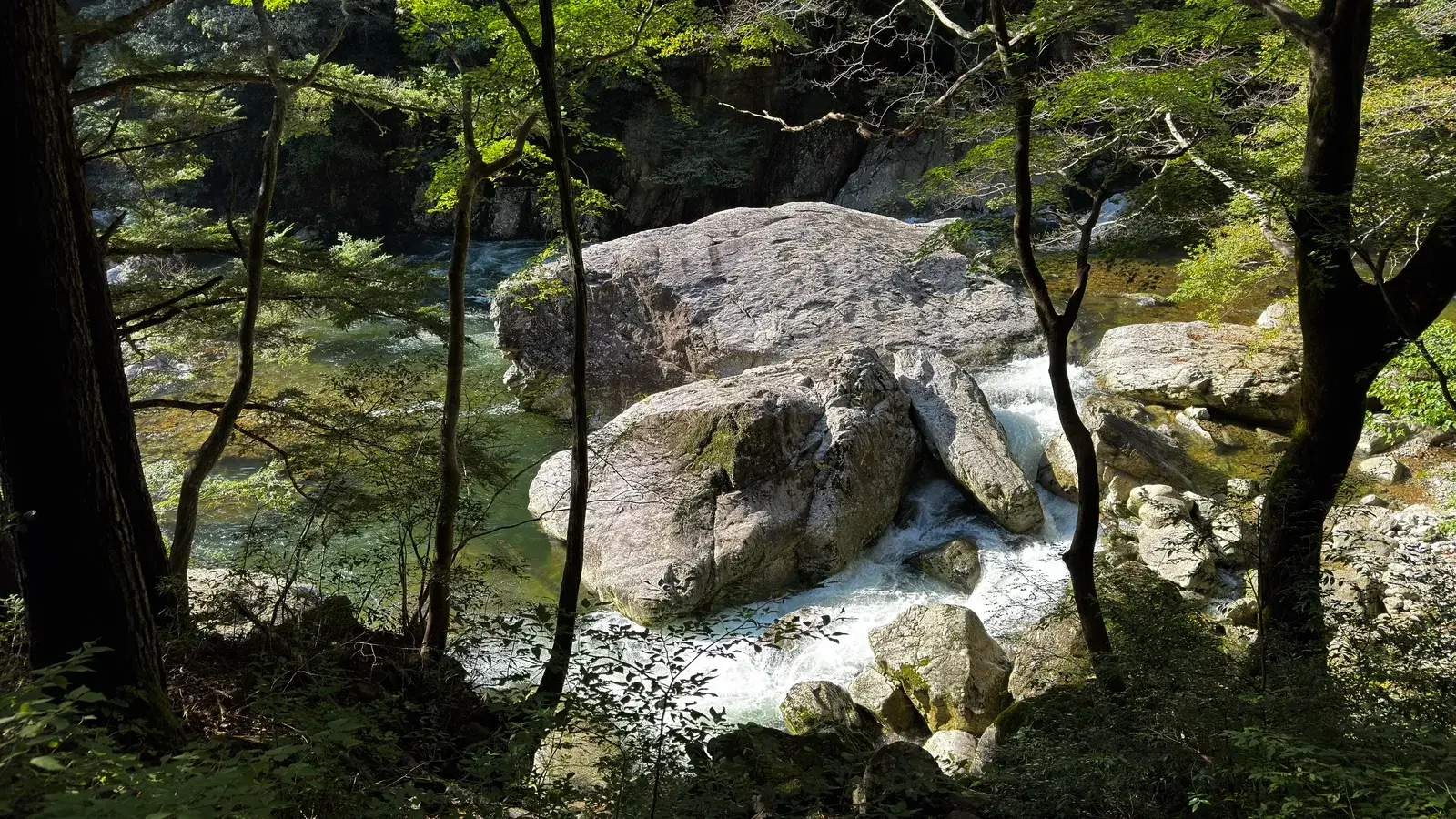 正面口から黒淵までは渓谷のうねり具合や滝など見どころが多いです。渡し舟の営業日は事前に調べておくと良いでしょう。